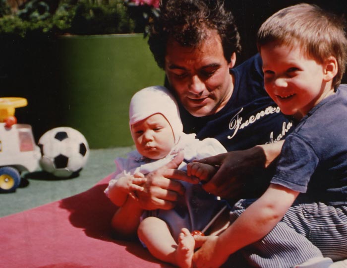 In den Sommerpausen von "Holiday on Ice" verlagerte sich der sportliche Schwerpunkt von der Eisbahn in das Kinderzimmer. Bastian (1), Jürgen (37), Christoph (4).